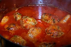 One of the great traditions of the Italian American enclave in the U.S. is the ritual of Sunday afternoon when the entire family gets together for Mama’s or Nona’s famed “Sunday Sauce.” What is it? Well there are a number of variations on the theme. Most Sunday Sauce’s are made with Italian Sausage, Braciola, and Meatballs. Some people make theirs with pork ribs, beef neck, and possibly chicken thighs and backs. These meats are slowly simmered for several hours with tomato, minced onions, garlic, celery, and carrots. I generally like to make my Sunday Sauce with sausage, meatballs, and pork ribs. Other times I’ll make it with Sausage, Ribs, and Braciola. An old tradition in some families is that mother or grandma would start the sauce early on a Sunday morning, get it simmering away for a couple hours on top of the stove, then put it in the oven for a couple hours while everyone goes to church, the sauce slowly simmers and when you get back home, the sauce is ready.
